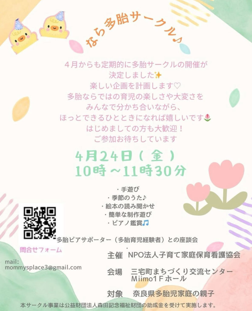 今年度も4月から定期的に、多胎サークルを開催します✨